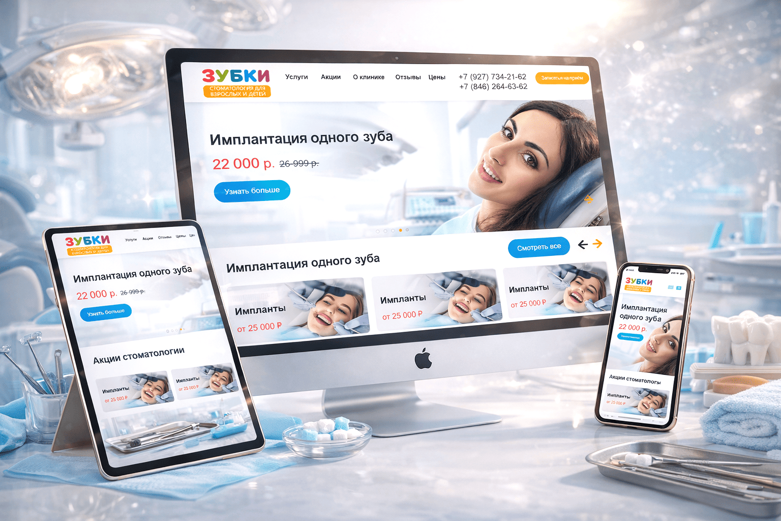 Первое впечатление от сайта 32karata-allon4.ru — спокойная собранность и ощущение контроля над процессом. Интерфейс сразу транслирует состояние «здесь знают, что делают». Холодно-чистая клиническая палитра, реальные портреты врача и пациента, отсутствие визуального давления формируют чувство прогнозируемого исхода. Так делают сайты, которые снимают тревожность и подталкивают к записи — через доверие и устойчивость, а не через нагнетание страха боли. Дизайн разработан веб-компанией РОСТСАЙТ.
